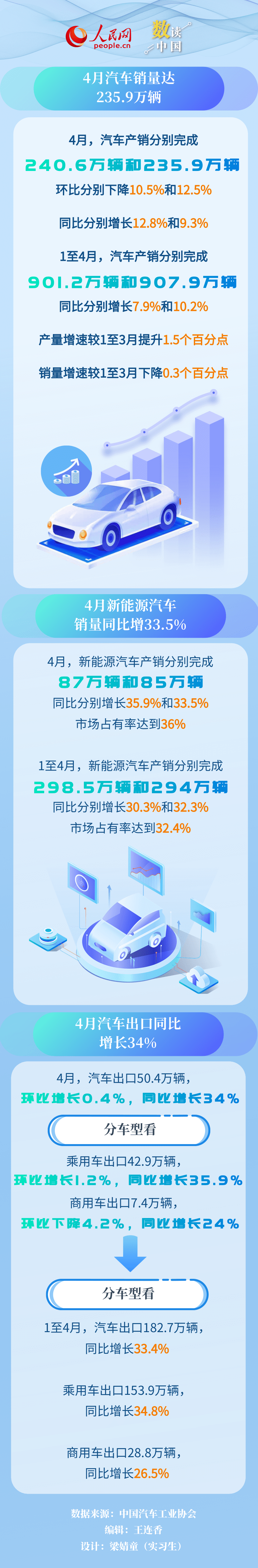 杏宇平台:4月我国新能源汽车和汽车出口同比继续保持快速增长